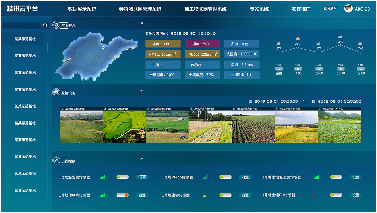 将国际领先的物联网、移动互联网、云计算等信息技术与传统农业相结合,搭建集农业环境感知、农业生产优化、农业智能化/标准化生产服务平台,旨在帮助农业从业者构建起一个“从生产到销售,从农田到餐桌”的农业智能化服务体系。提供行业最低价土壤墒情传感器、农业气象站、智慧农业控制系统、虫情监测系统、孢子捕捉分析仪、原位根系扫描仪等设备,帮助农业从业者构建起一个“从生产到销售,从农田到餐桌”的农业智能化服务体系,为用户带来一站式的智慧农业全新体验,从生产到售后全面辅佐,助力农业生产标准化、规模化、现代化发展进程。与中国农投集团、贵州航天智慧农业有限公司、神农智慧农业研究院南京有限公司、潍坊农创大潍生态农业科技有限责任公司、兰溪市雨龙农业设施技术服务有限公司等企业建立良好的合作关系,参与四川泸州智慧果园项目、济宁泗水农业产业园区建设、海南陵水百亩大棚试点基地、浙江义乌美丽数字乡村建设等多个大型项目。