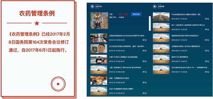 农业工作者与专家使用,专家 及时发布相关农业信息,可实 时更新,方便农业工作者获取 最新资讯。